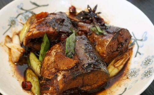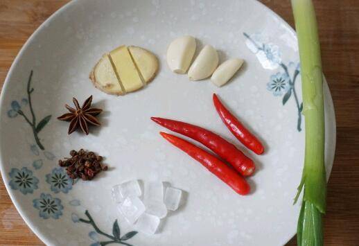 用料:青占鱼500g、蒜头3个、生姜3片、蒜苗1颗、干红辣椒3个、花椒15粒、冰糖6粒、八角1个、食用盐、鸡精、五香粉、黄酒、啤酒、老抽、生抽。