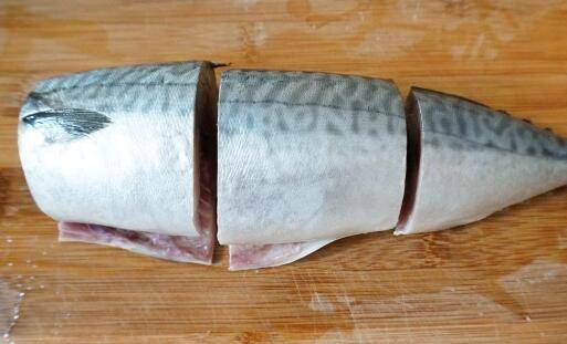 1、青占鱼去头去尾,开肚去除内脏,清洗干净后切成三段。