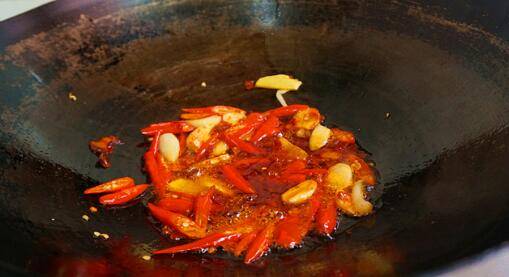 7、锅里上油,小火放入大蒜生姜末爆香。