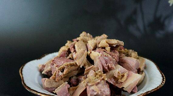 2、锅里上水,放入腊鸭块儿一起大火煮开。