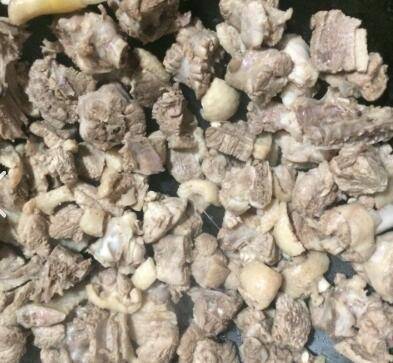 锅烧热,倒入沥水后的鸭块,将鸭肉里的水气炒干。