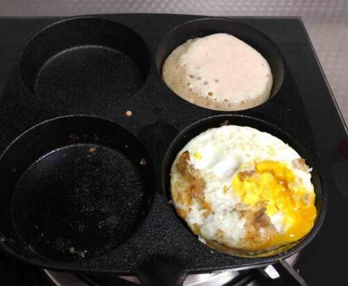 最佳答案准备食材:面粉、盐、糖、酵母粉、泡打粉、鸡蛋、五香粉、温水。将除鸡蛋和温水以外的食材放入大碗中倒入温水,边倒边用筷子搅拌搅拌成顺滑无干粉的面糊静置15分钟,使之微微发酵锅里刷油,铸铁锅要多刷点,避免粘锅一个锅眼打入鸡蛋,另一锅眼倒入没过锅底的面糊当面糊凝固时将煎熟的鸡蛋倒扣在面...