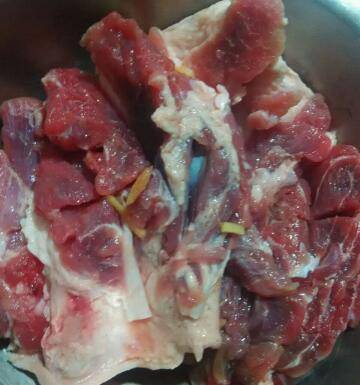 3、腌制后的蹄膀,用清水冲洗干净备用。