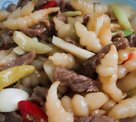 蒜仁适量、小米椒适量、大蒜适量、牛肉适量、泡菜一包、红薯粉适量、橄榄油适量、盐适量、鸡精适量、料酒适量、蚝油适量。