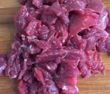 牛肉加红薯粉、生抽、料酒腌制十分钟。
