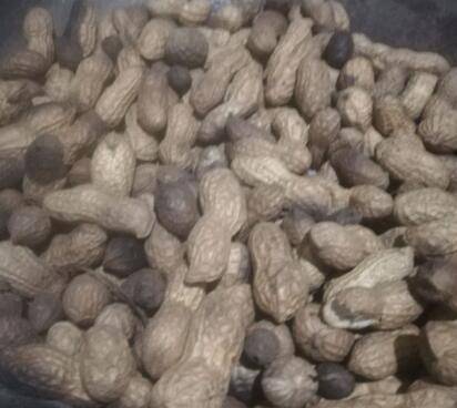 将带皮花生上的土洗掉,晾干。准备好锅,洗干净不要带油,放入盐,等温度上来放入花生。