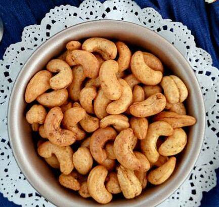 将适量的色拉油、椒盐加入到腰果中,并拌匀。