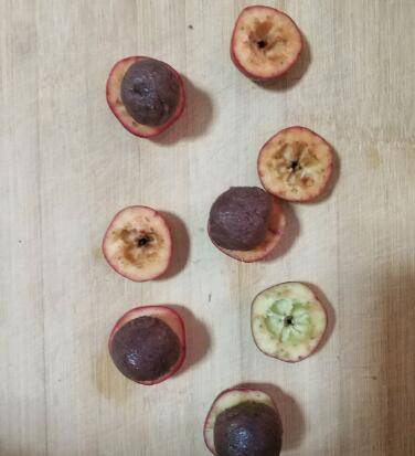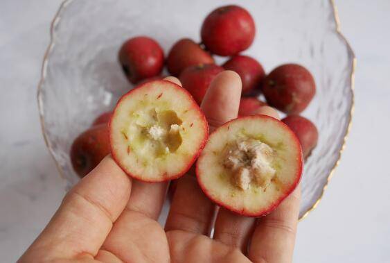 2、山楂洗净晾干水分,从中间切开,去掉籽。