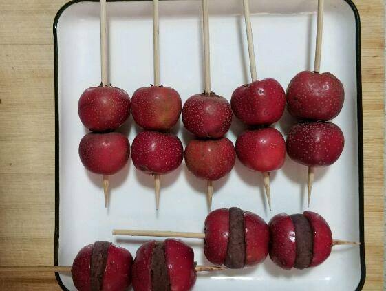 4、穿上竹签,不要穿太多,不好挂糖浆。