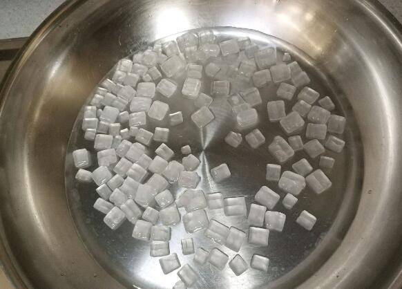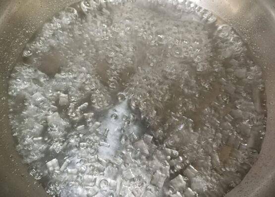 5、冰糖水放锅里煮开,不要搅拌。