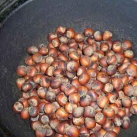1、取榛子适量,倒入锅里,开小火,要不停的翻炒。