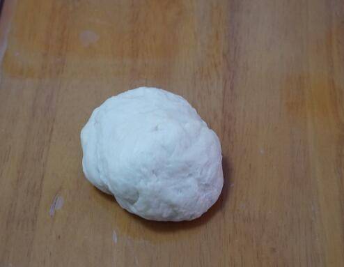 2、倒入纯牛奶,用手揉成一个面团后取出放台面上,用双手揉成稍光滑的面团。