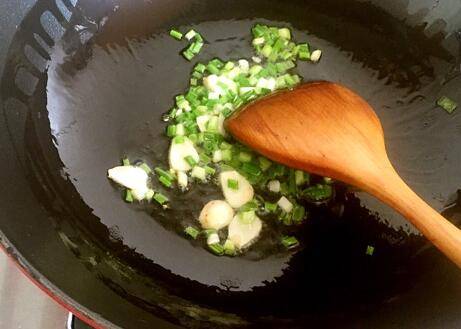 放热油,加入蒜片和葱末爆香,爆香后加入西红柿翻炒出汁。