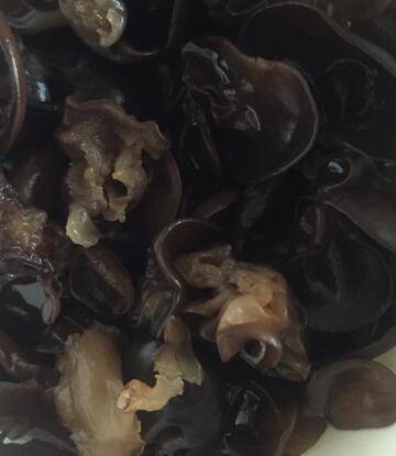 红烧肉切粒,黑木耳适量泡发洗干净待用。