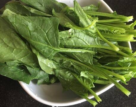 一把菠菜洗干净待用,用手掰成两段。