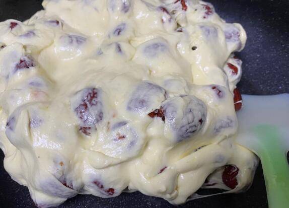黄油融化后倒入棉花糖继续搅拌,棉花糖融化后倒入奶粉混合均匀。