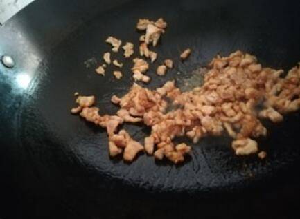 5.肉丁放入炒一分钟。