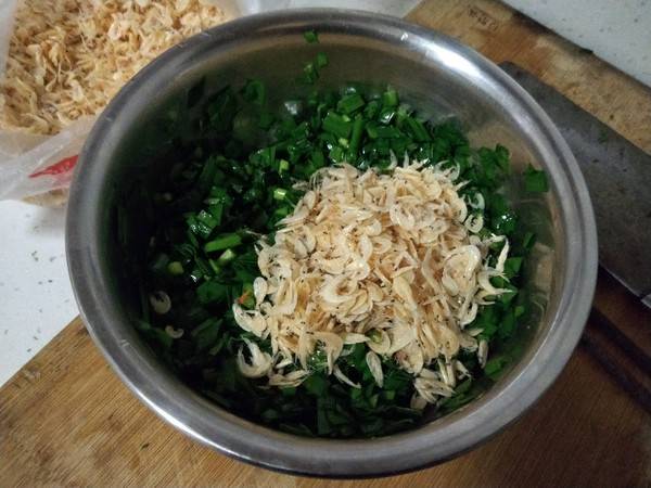 1、韭菜300克、鸡蛋3个、虾皮50克、植物油适量。