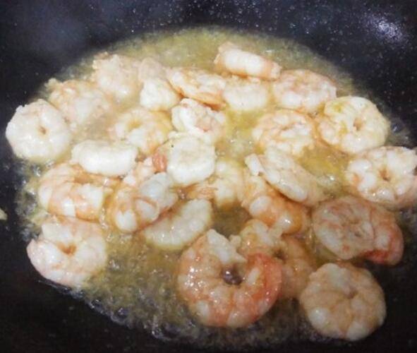 5.炒至虾仁变色。
