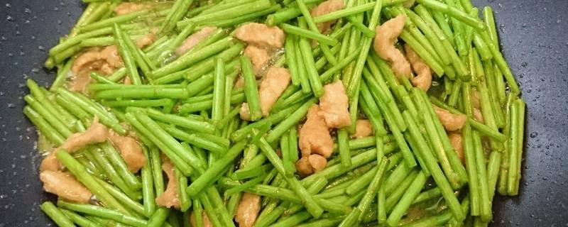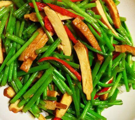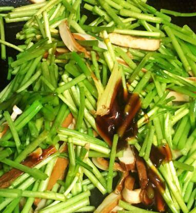 放入切好的香干,再放切好的芦蒿,翻炒均匀。