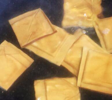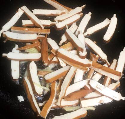 把香干放开水里煮两分钟,捞起备用。