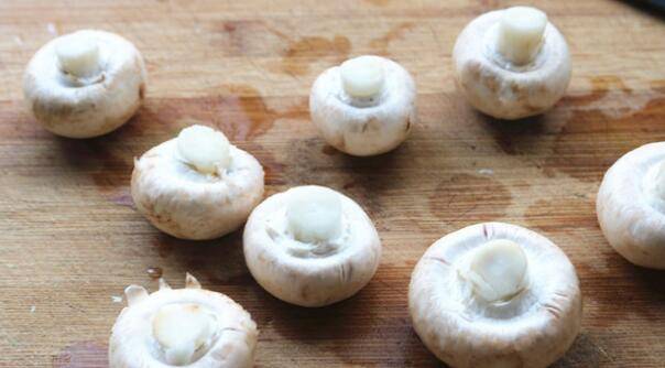 2、蘑菇洗净,把颈部的顶部切面削去,切成均匀的片。