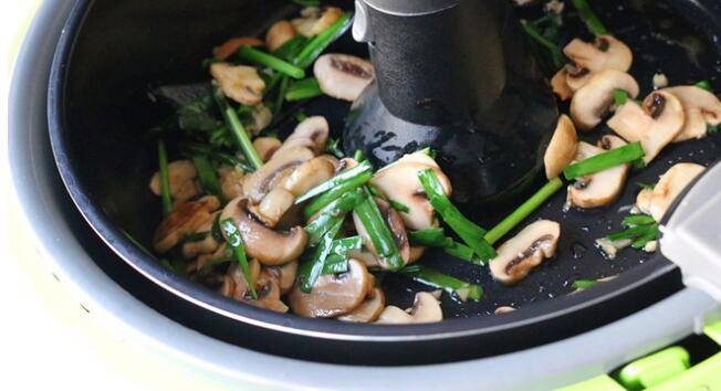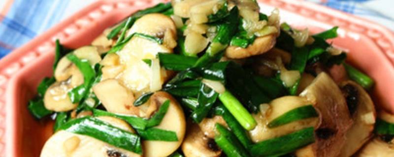 1、准备材料:蘑菇300克、韭菜50克、蒜3颗、花生油15毫升、蚝油10克。