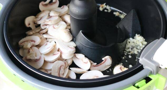 5、炸锅内加入花生油,设定炸锅时间2分钟,爆香蒜末。