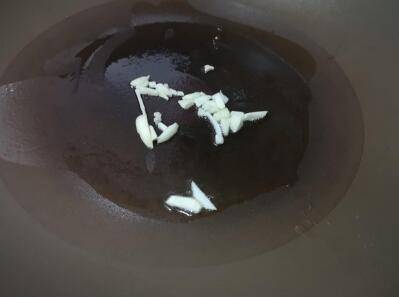 锅内热油,爆香蒜。