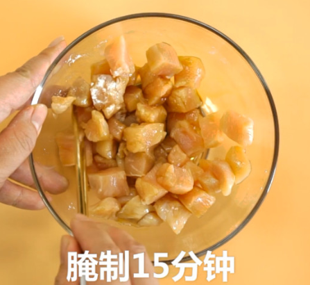 鸡肉用生抽、淀粉腌制15分钟;