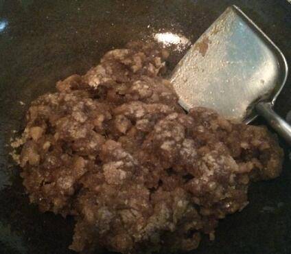 10、加入焯过水的肉,迅速搅拌,让肉均匀上色。