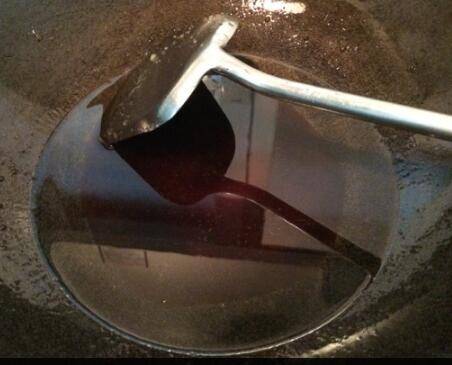 9、冰糖颜色呈焦褐色,且泛小泡泡时,表明已经熬好。