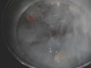带白菜七成热时,加入事先炒好的血片;