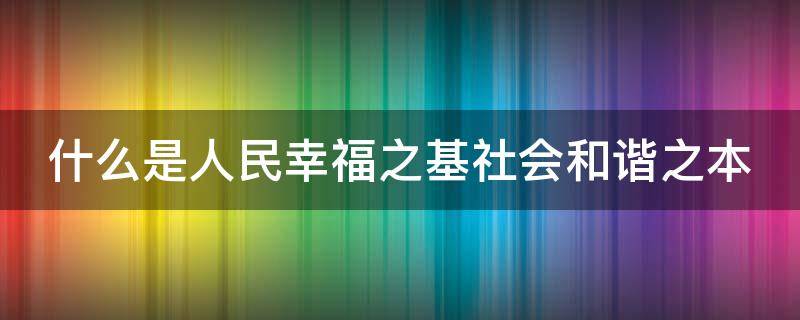 什么是人民幸福之基社会和谐之本