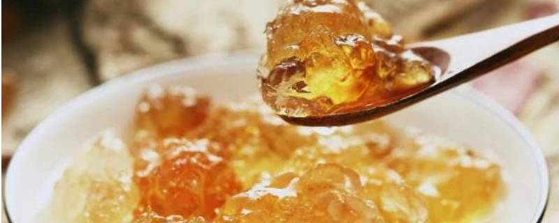 桃胶,为蔷薇科植物桃或山桃等树皮中分泌出来的树脂,又名桃油,桃脂,桃花泪,桃树胶,桃凝,。是桃树或者在外力作用下产生伤口,分泌桃胶有利于伤口自愈,比较粘稠的液体通过太阳晒蒸发,产生固体。干的桃胶呈结晶石状很硬,看着有点像琥珀。桃胶有足够的水溶性和适当的粘度,用清水浸泡十多个小时候后泡发变软。它有清血降脂,缓解压力和抗皱嫩肤的功效。树胶的主要组成为半乳糖、鼠李糖、α-葡萄糖醛酸等。含有碳水化学物,脂肪,蛋白质和植物胶原蛋白。