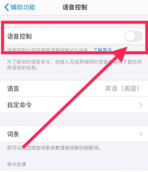 找到最上面的语音控制,点击绿色是打开,点击变成灰色就是关闭了。