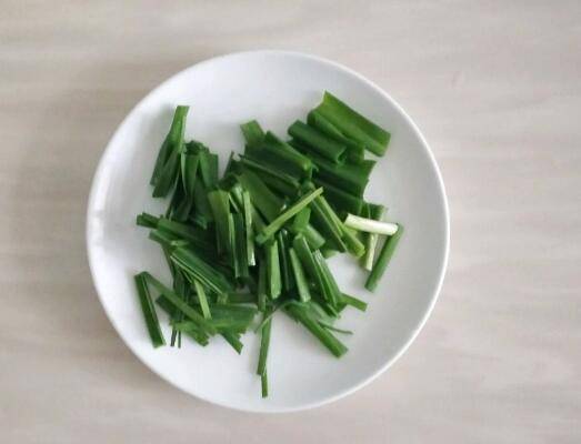 2、蒜苗洗净切小寸段,准备好姜葱蒜。