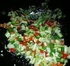 5.锅里少许油、加入所有配料中火炒香。