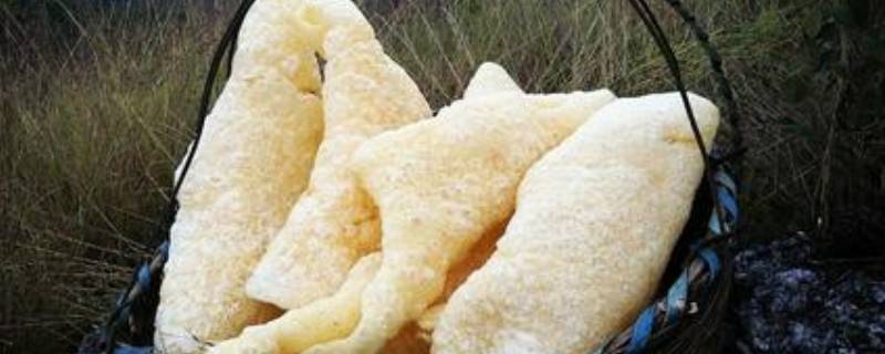 接下来就是晾干了,放在通风的地方,不需要太阳晒,三天左右就干了,晾干后的猪皮比较硬,不过可以一直挂在通风干燥的地方,和腊肉一样放多久都不会坏,随吃随炸非常方便。