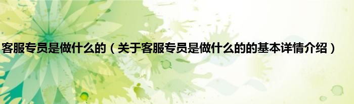 本文关于客服专员是做什么的的基本详情介绍就讲解完毕,希望对大家有所帮助。