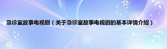 本文关于急诊室故事电视剧的基本详情介绍就讲解完毕,希望对大家有所帮助。