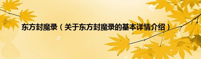 本文关于东方封魔录的基本详情介绍就讲解完毕,希望对大家有所帮助。