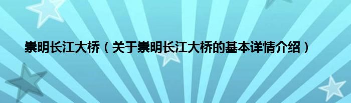 本文关于崇明长江大桥的基本详情介绍就讲解完毕,希望对大家有所帮助。