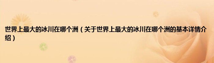 本文关于世界上最大的冰川在哪个洲的基本详情介绍就讲解完毕,希望对大家有所帮助。