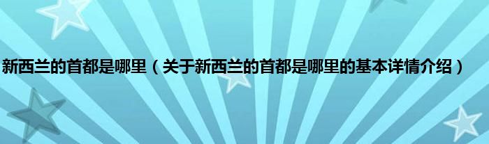 本文关于新西兰的首都是哪里的基本详情介绍就讲解完毕,希望对大家有所帮助。