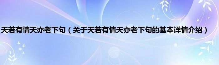 本文关于天若有情天亦老下句的基本详情介绍就讲解完毕,希望对大家有所帮助。
