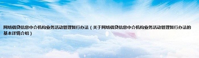 本文关于网络借贷信息中介机构业务活动管理暂行办法的基本详情介绍就讲解完毕,希望对大家有所帮助。
