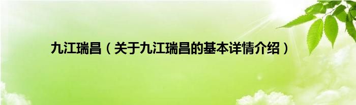 本文关于九江瑞昌的基本详情介绍就讲解完毕,希望对大家有所帮助。