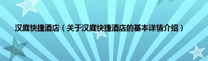 本文关于汉庭快捷酒店的基本详情介绍就讲解完毕,希望对大家有所帮助。