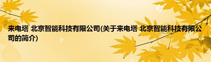本文关于来电塔 北京智能科技有限公司的简介就讲解完毕,希望对大家有所帮助。